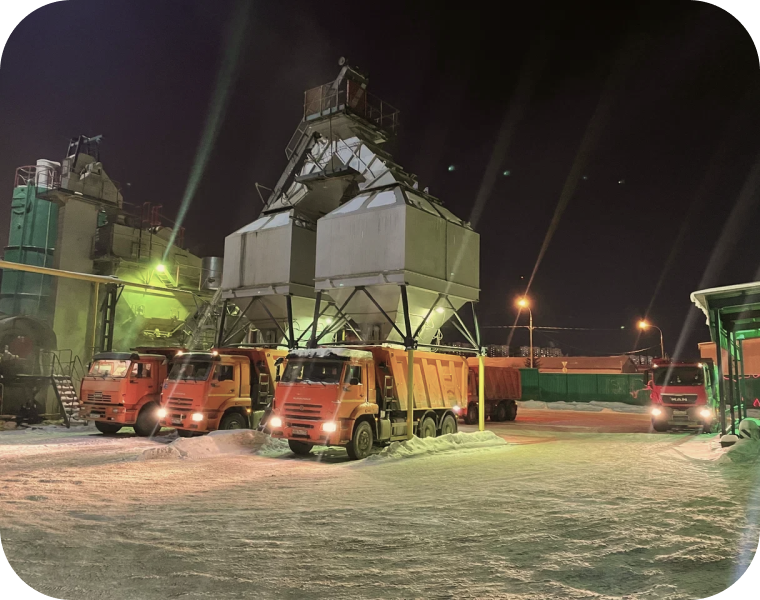 Выполнены работы по устройству подстилающих слоев и асфальтированию территории завода. Соблюдены все требования нормативной документации. Грамотная разуклонка при асфальтировании обеспечивает водосток в необходимых направлениях. Покрытие выдерживает нагрузки от проезда тяжелой техники.