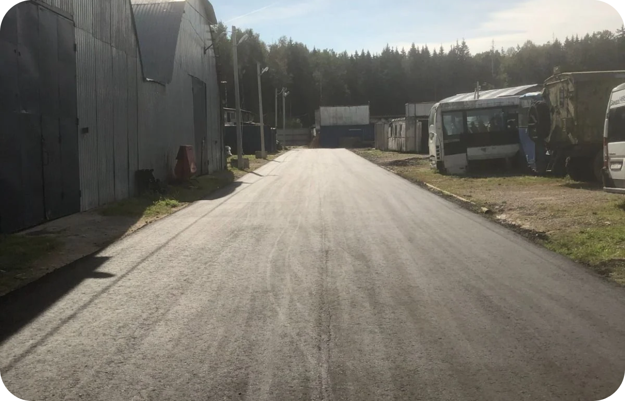 Виды работ: Асфальтирование, установка бордюрных камней, водоотводных лотков, ЛОСов.